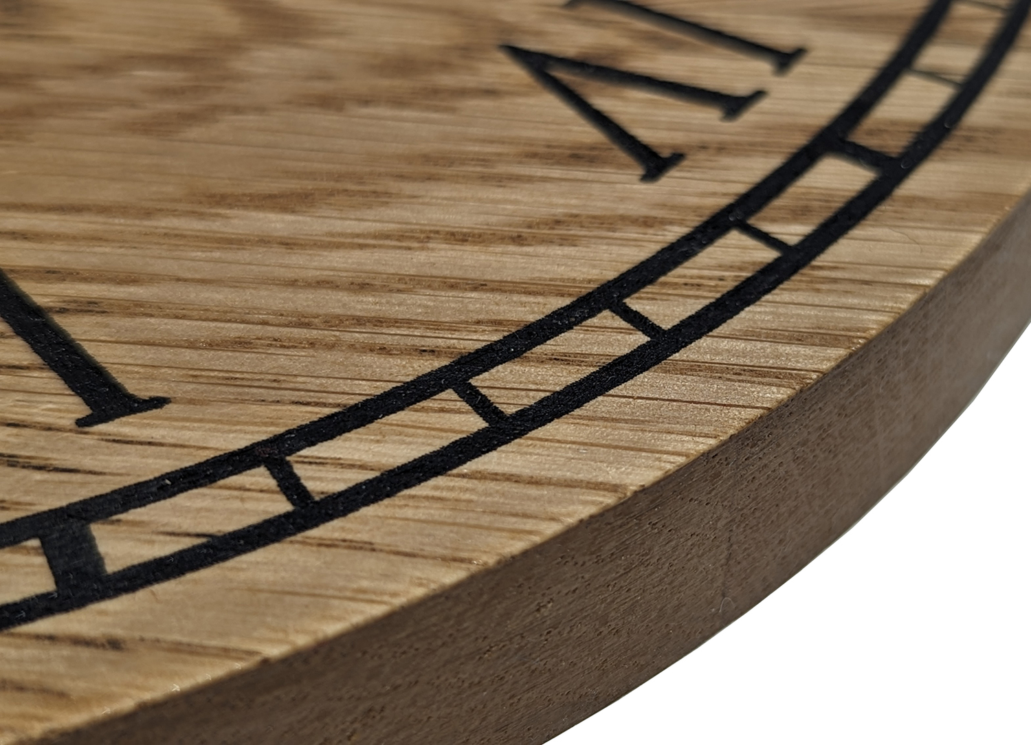 We use a high-powered CNC laser to create our signature-striking black contrast. Our engraving enables effortless viewing from a distance, eliminating the need to strain your eyes or adjust your position to look at and tell the time.