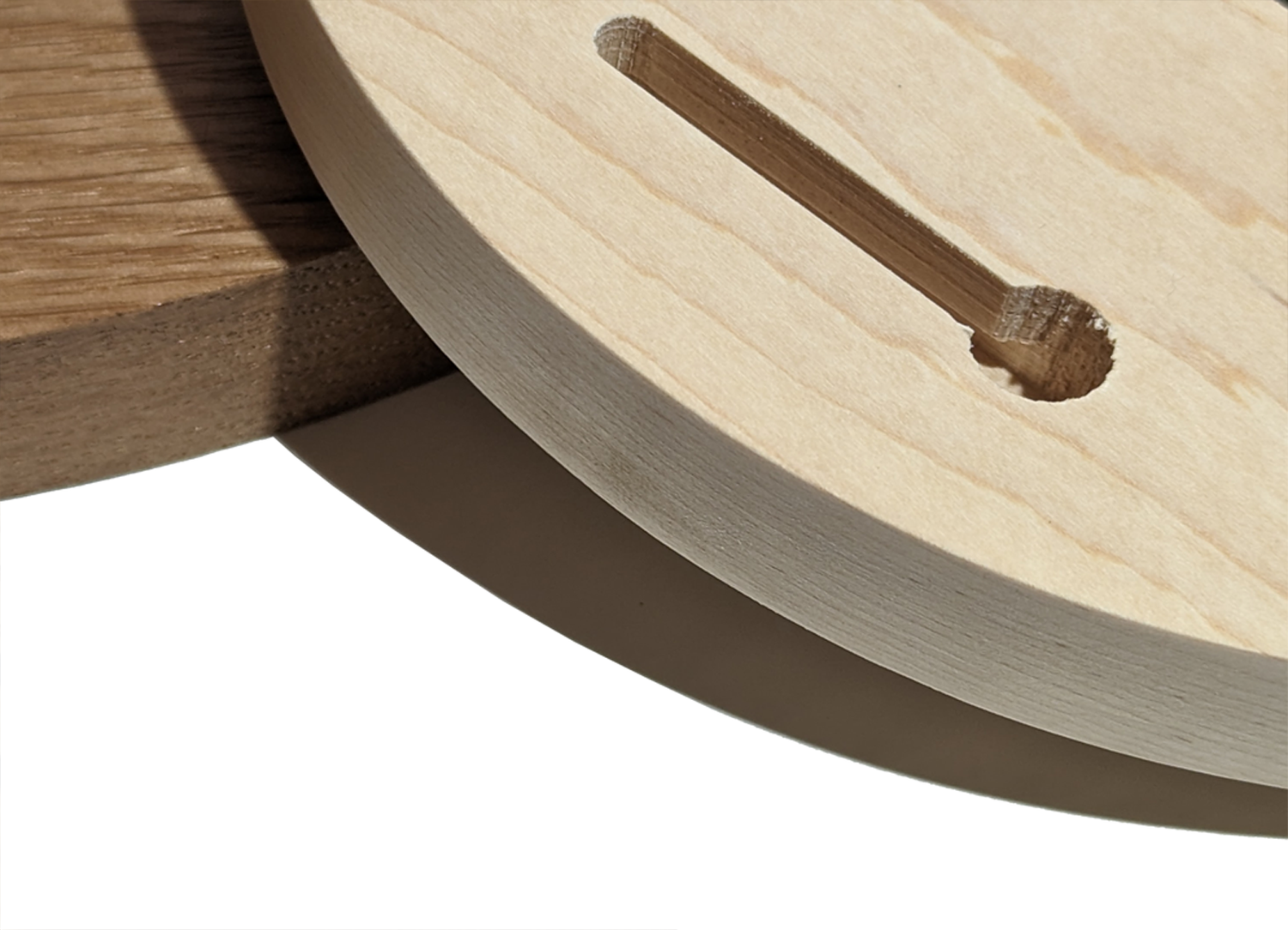 Our dial is our specialty. It's a unique 3/4" thick solid wood housing, has a recessed movement pocket and includes an integrated keyhole slot for flush and easy wall-hanging. Choose from two wood types and four available sizes.